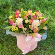 Гвоздики и альстромерии в коробке