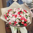 Коробка коралловых пионовидных роз и гвоздик