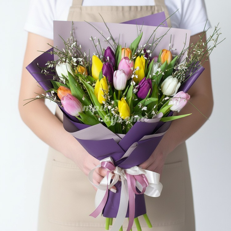 21 разноцветный тюльпан на 8 марта