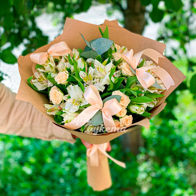 Букет белых альстромерий с куст. розами