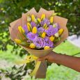 Букет голубых гвоздик с эустомами