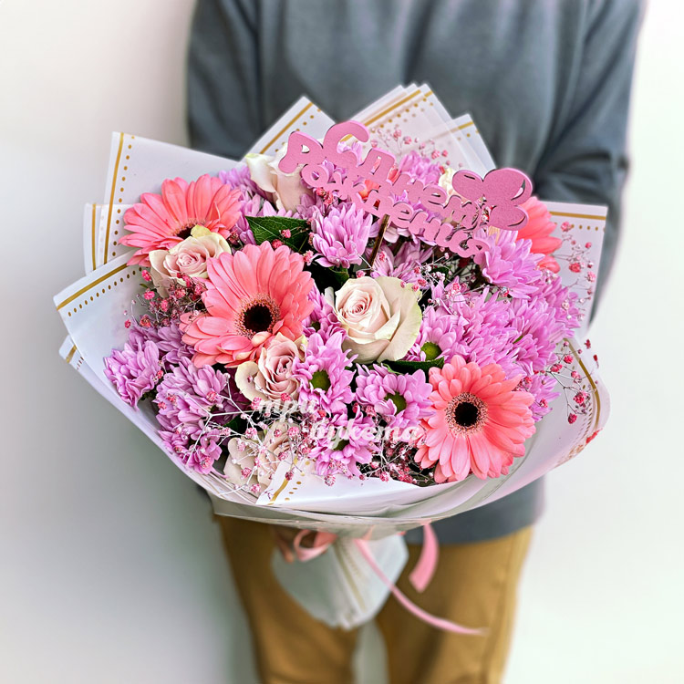 Букет хризантем и гербер на день рождения