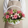 Букет из белых роз с клубникой