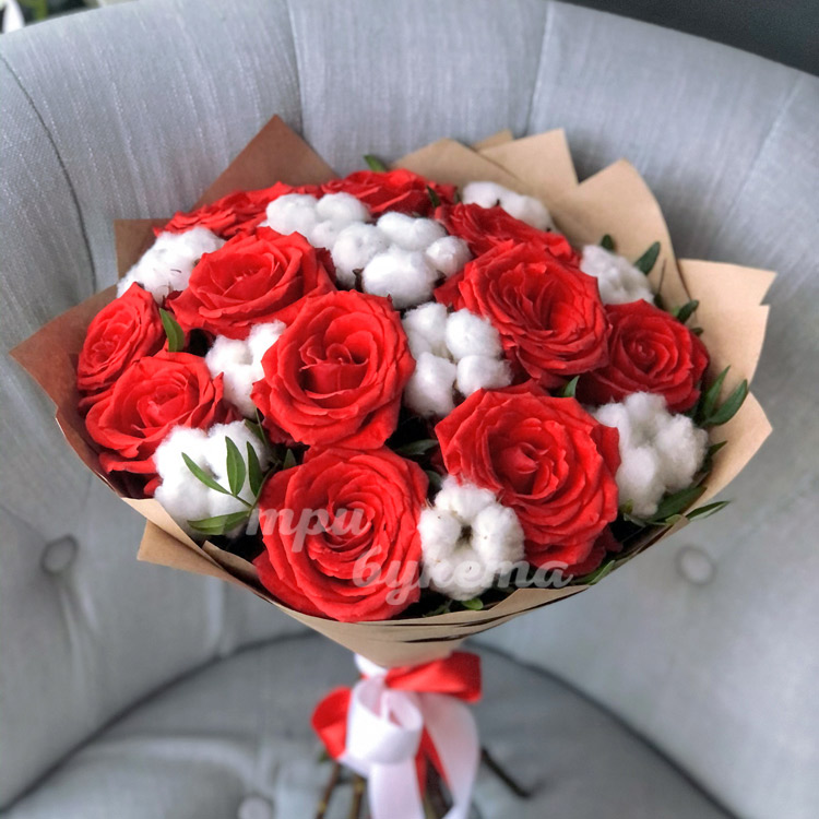 - Бордовые розы, 11 шт.