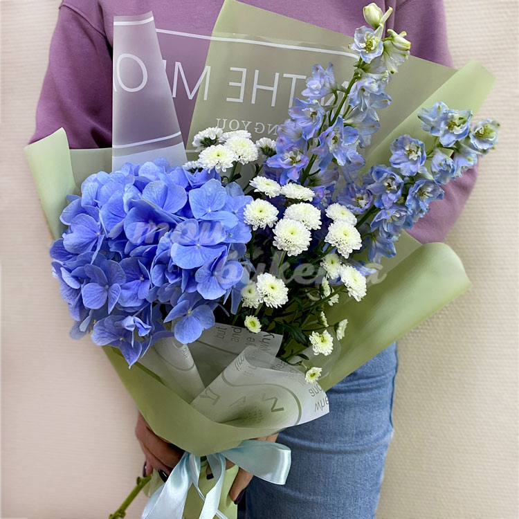 Букет из гортензии и дельфиниума