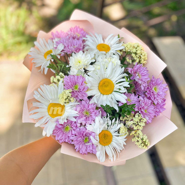 Букет из хризантем и нивяника