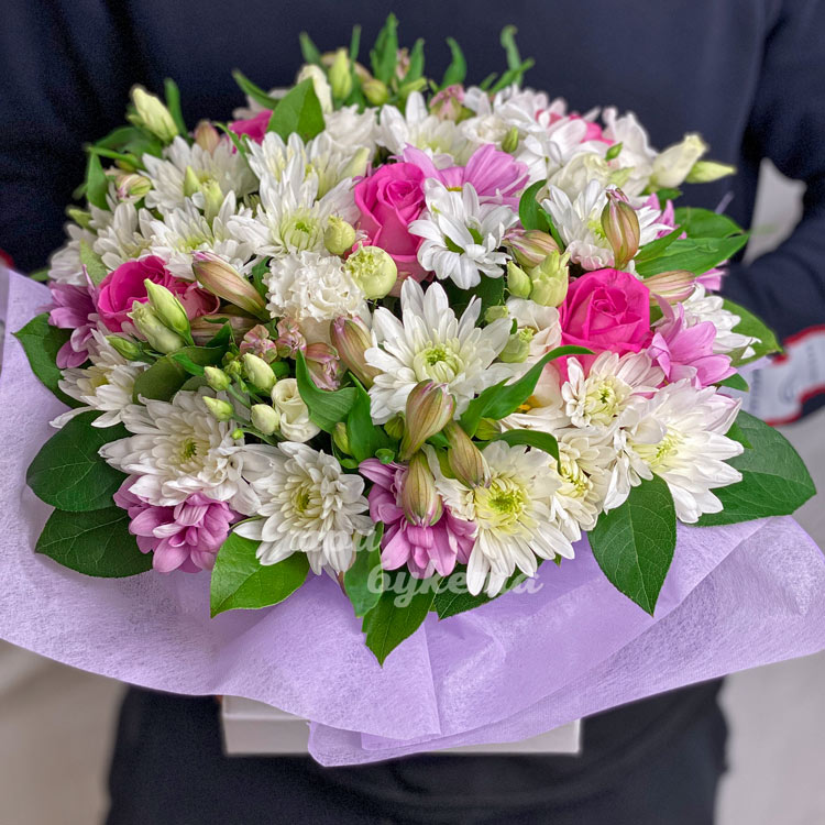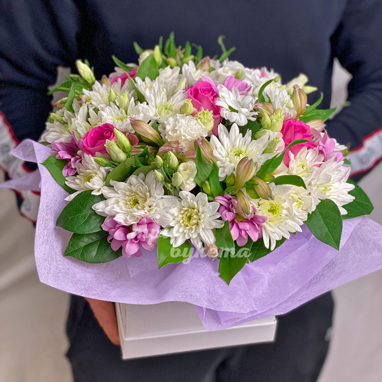 Коробка альстромерий с хризантемами