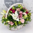 Корзина гортензий и розовых роз
