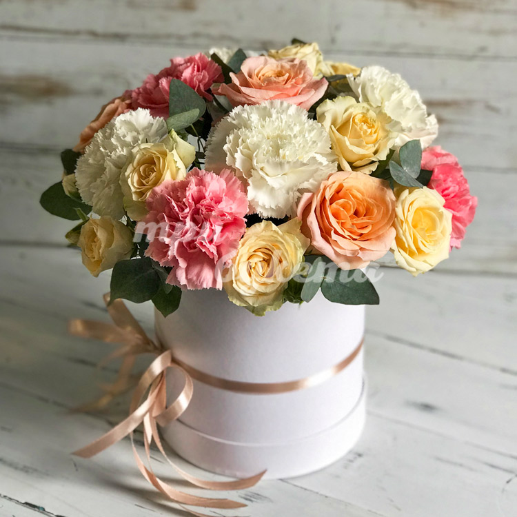 Нежные розы и гвоздики в коробке