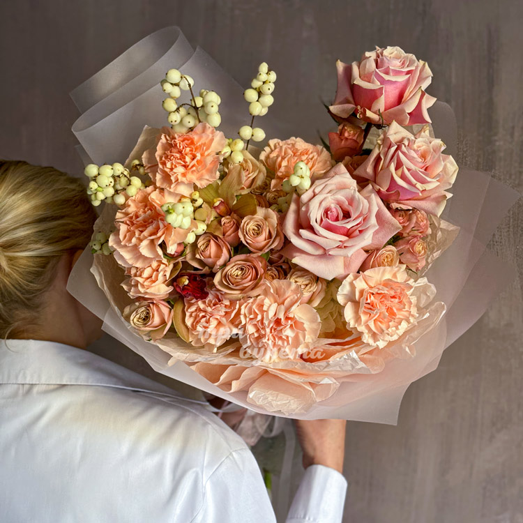 - Персиковые гвоздики, 7 шт.