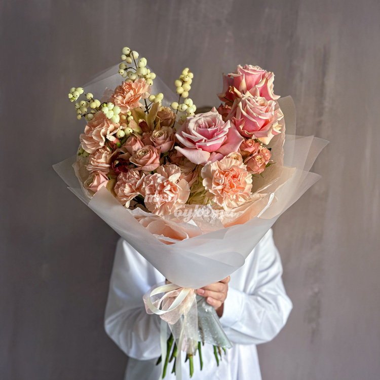 Осенний букет французских роз и диантусов